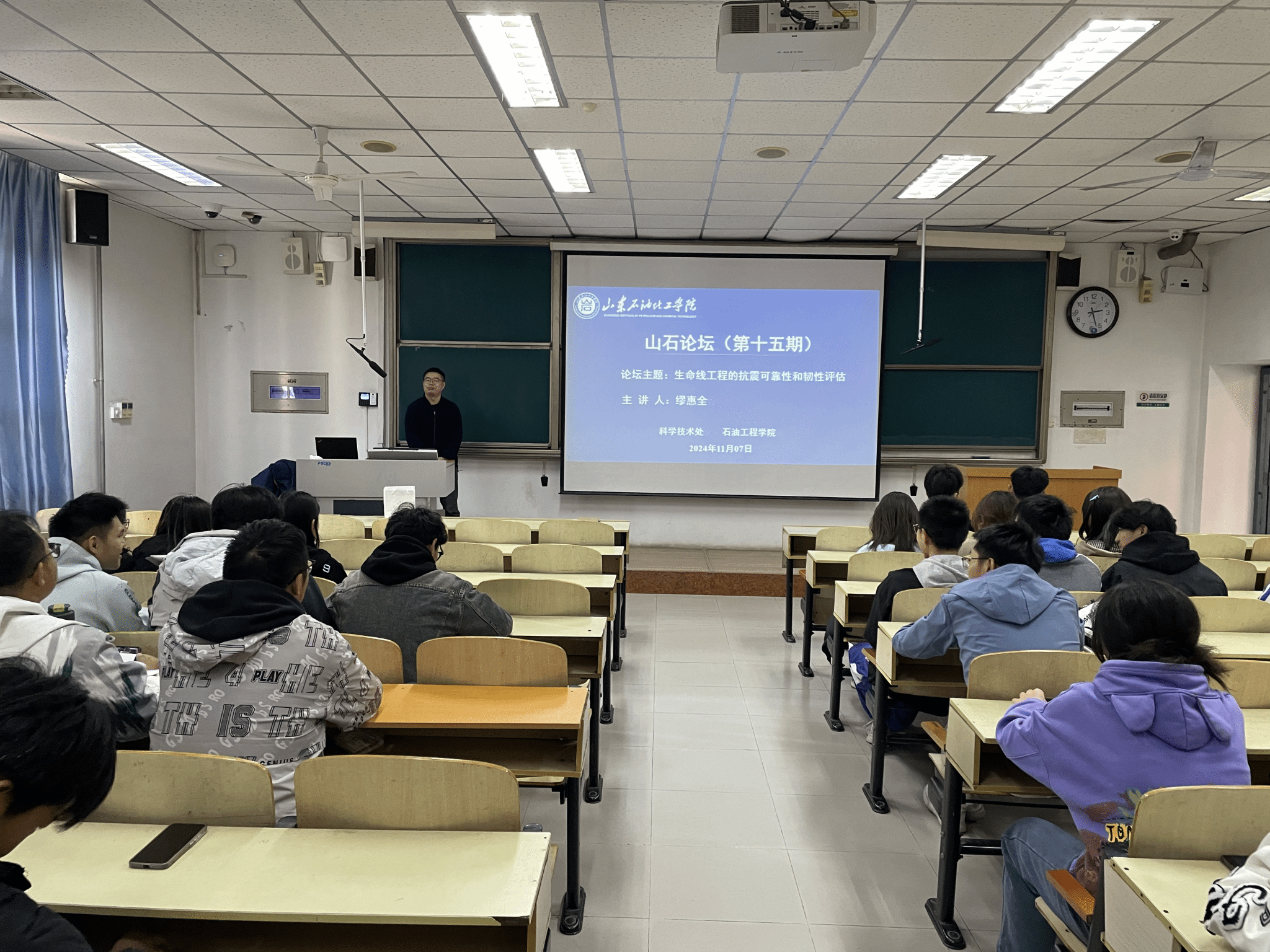11月7日下午,由科研处主办,石油工程学院承办的第十五期“山石论坛”成功举行。论坛邀请北京工业大学缪惠全副教授作了题为《生命线工程的抗震可靠性和韧性评估》的学术报告。论坛由石油工程学院院长代晓东主持,部分教师和学生参加了本次活动。