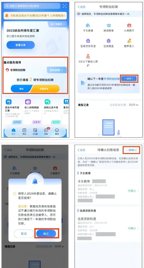 情形一:2025年专项附加扣除信息无变化,只需在2024年基础上确认即可。