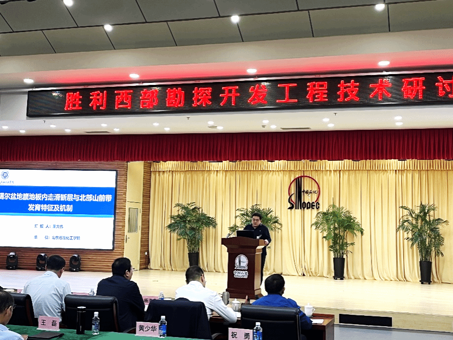 王学武作了“低渗-致密油藏渗流规律和开采机理”的报告,介绍了研究团队在多尺度渗流物理模拟实验技术和渗流机理方面取得的最新进展;董大伟作了“准噶尔盆地腹地板内走滑断层与北部山前带发育特征及机制”的报告,提出走滑断层“分段活化”演化模式,为深层油气运移路径刻画提供了新视角。
