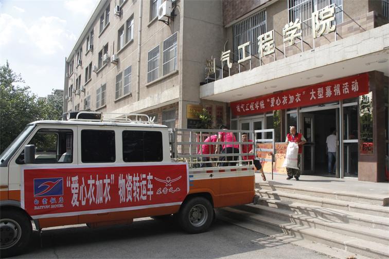 9月3日下午两时三十分,在中国石油大学胜利学院油气工程学院门口,胜利学院油气工程学院小水滴爱心志愿者服务队与东营市义工协会举行了简短而有意义的交接仪式,东营市义工协会为油气工程学院颁发了“东营义工爱心单位”证书,随后,“爱心衣加衣”物资转运车满载着同学们的爱心与希望启程,将1200余件衣物送到最需要它们的人们的手中。