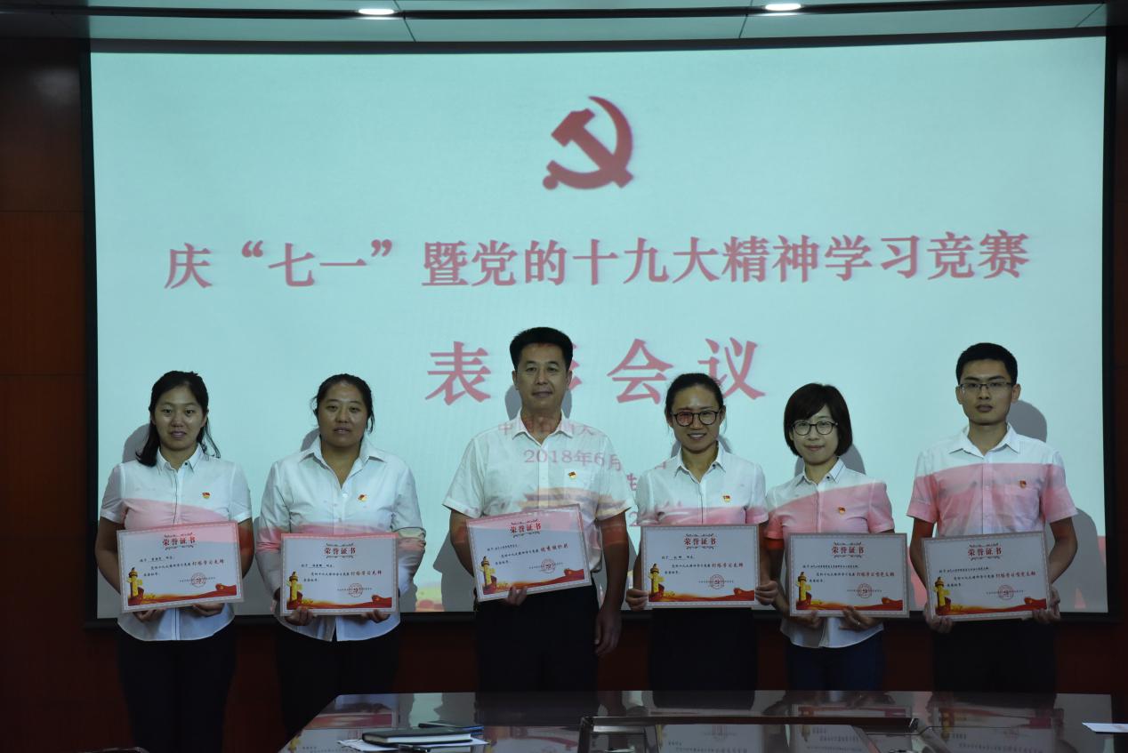 在党的生日来临之际,6月28日下午,学校在主楼501会议室召开庆“七一”暨党的十九大精神学习竞赛表彰大会,我院共获7项表彰,其中李洪言、杨光辉、刘坤3名老师获“灯塔学习先锋”,石油工程党支部、储运工程党支部和资源科学与工程党支部3个支部获“灯塔学习型党支部”,油气工程学院党总支获“优秀组织奖”。储运工程党支部教师李洪言、资源科学与工程党支部书记胡秋媛作为先进代表在会上交流发言,他们分别介绍了基层党建工作开展情况,分享了十九大精神学习竞赛的心得体会。