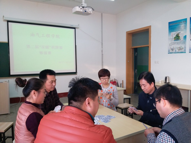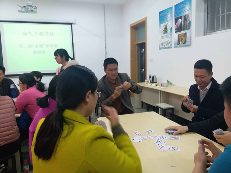 12月8日下午,油气工程学院第二届“家暖”棋牌比赛在石大校区西配楼2005、2007室举行。油气全体教职员工参与了比赛。