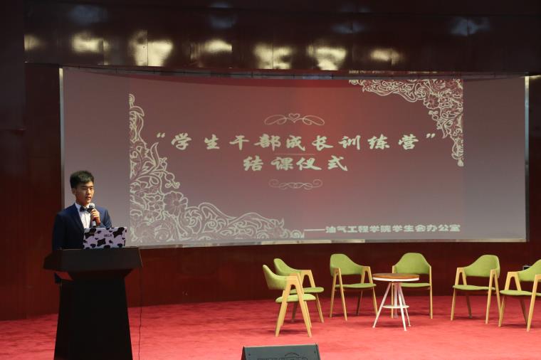 为了总结学生干部们在这一学期学生干部培训中所获得的经验和教训,以便今后更好的为老师和同学们服务,油气工程学院特于6月21日下午五点在小音乐厅举行了油气工程学院第一期学生干部成长训练营结课仪式,辅导员毕菲菲、李聪聪、蒋浩、胡洪翠、伍佳慧和各学生干部出席了本次结课仪式,本次结课仪式由田守成主持。