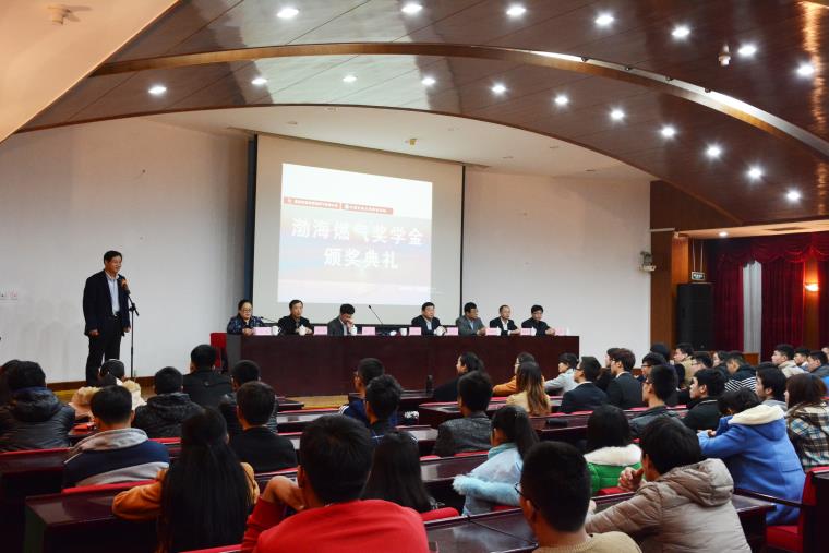 仪式开始由赫正副院长宣布2015年度“渤海燃气奖学金”获奖学生名单,70名品学兼优的储运专业学生获得该奖学金。赵明远董事长、丛林峰副董事长、徐月利副院长分别为获得一、二、三等奖学生颁奖并合影。