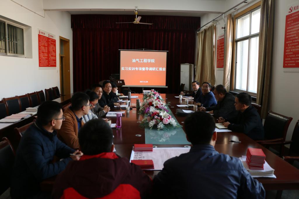 11月28日下午,按照本学期学校专项督导运行计划,油气工程学院实习实训专项督导汇报会在西配楼4004会议室举行。学校专项督导组专家马存栋主任、王卫军副主任、高教评价中心李军主任、教科处王劲松副处长、文法经管王贞副院长、护理刘宏强副院长、油气工程学院领导、各系室主任及部分实习指导教师参加了本次会议。会议由油气工程学院院长梁敬升主持。