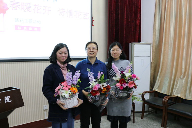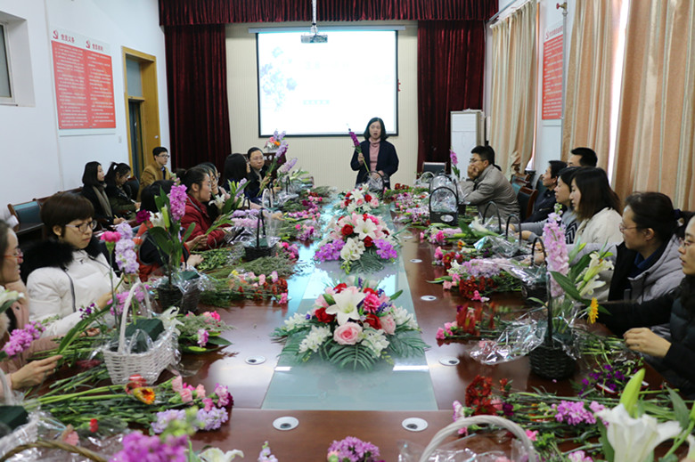 章志军首先表达了对女教师的赞美,并为女教师送去节日祝福。梁敬升表示了对女教职工们的感谢,肯定了她们为学院发展做出的贡献,同时希望全体教职工新学期继续踏实努力、砥砺前行。我院男教职工代表代晓东副院长献唱《夜夜夜夜》,将全场气氛带到高潮。随后,我院工会副主席董燕从花语和插花造型等方面为老师们作了插花指导。