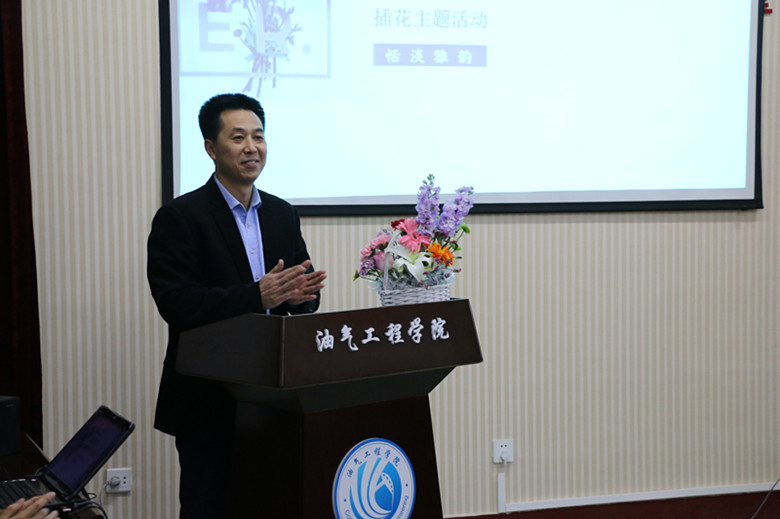 2018年3月8日,油气工程学院于石大校区西配楼会议室举办“春暖花开,诗情花艺”艺术插花活动,校团委书记魏晓慧、副书记王瑞,工会张琳老师、油气工程学院执行院长梁敬升、党总支书记章志军,以及我院全体女教职工和部分男教职工代表参加了此次活动。
