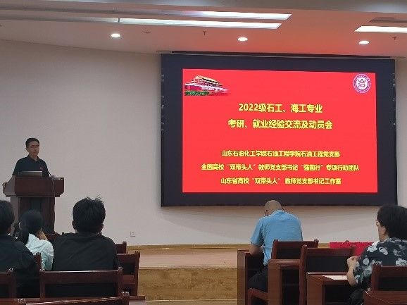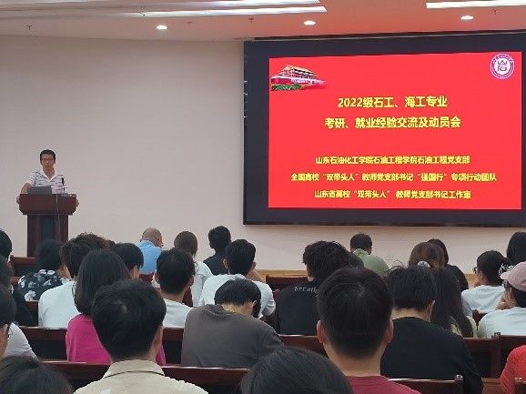 2025年6月16日下午,石油工程党支部与学工部门联合举办了2022级石油工程、海洋油气工程专业考研、就业经验交流及动员会,石油工程学院副院长王学武、石油工程系主任李翠和部分教师代表参加,活动由石油工程党支部书记王旭东主持。