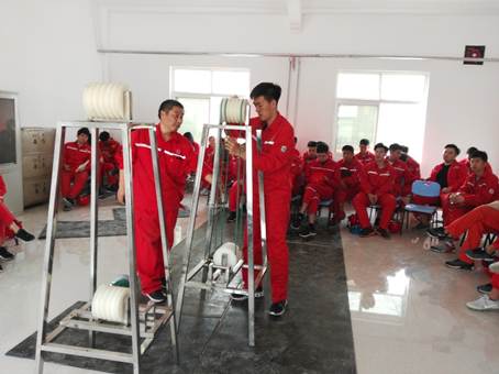 近日,2015级石油工程技术专业81名学生在胜利油田技能人才培训基地进行了为期三周的“专业技能训练”实习。本次实习内容丰富,包括安全教育、沙盘讲解、花穿大绳、更换回压阀门法兰垫片、井下作业仿真模拟训练、填写油水井班报表等15个项目。