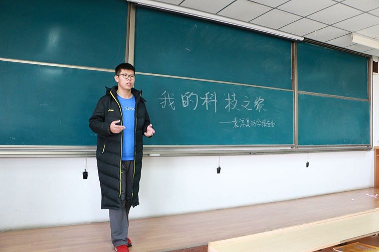 袁淳昊本学期先后赴复旦大学和上海科技大学参加科技培训讲座、学术报告会、大学生交流会等活动。为了使同学们足不出户就能了解到更多的知识,学习更多的科研方法、科研技巧及促进良好的学术氛围的形成。在霍凯老师及班委的协助下,学生精心组织了此次报告会,报告中他用鲜活的实例展现了复旦大学务实谦虚的学风,又简要介绍了自己所了解的上海科技大学的冒险精神和民主创新之风,最后,针对在上海市展览馆和博物馆等地方见到的人和景做了自己的阐述。