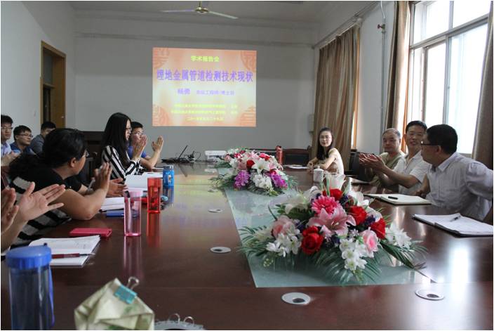 杨勇博士在本次报告中从管道检测的意义及作用、管道检测的科研成果及检测业绩、国内外腐蚀检测技术现状、腐蚀检测技术在胜利油田的应用及发展等内容进行了详细讲解。特别对于目前比较常用的管道腐蚀检测技术:SCM 杂散电流检测仪、管体检测-微泄漏检测技术、非接触式磁力诊断金属磁记忆技术、超声导波技术及其在胜利油田的发展及应用、油田非金属设备磁共振检测技术研究等,详细的讲述了其原理和应用情况。并与参会的教师和学生进行了交流,使在座的各位老师和学生都受益匪浅。