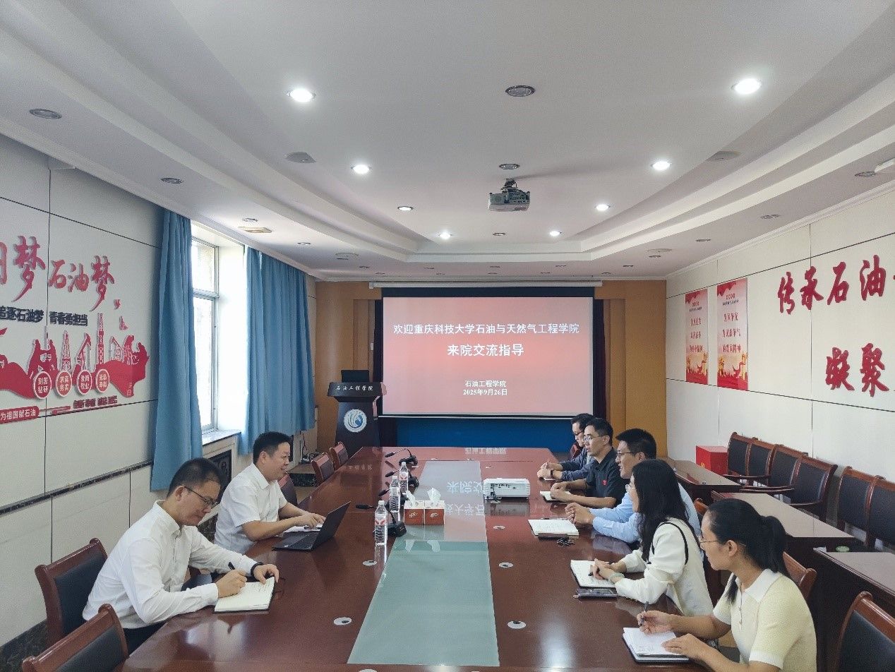 9月26日,重庆科技大学石油与天然气工程学院副院长黄小亮、油气田开发工程研究所田杰所长一行来院交流。石油工程学院院长代晓东、副院长辛艳萍、副院长王学武及系室主任、专业负责人与来宾进行座谈交流。