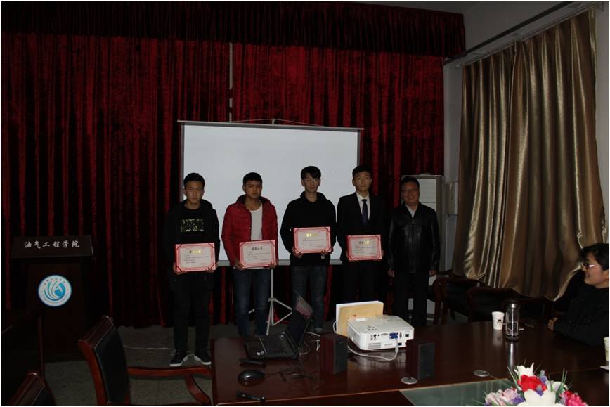 李震为石油工程专业实习优秀学生颁奖