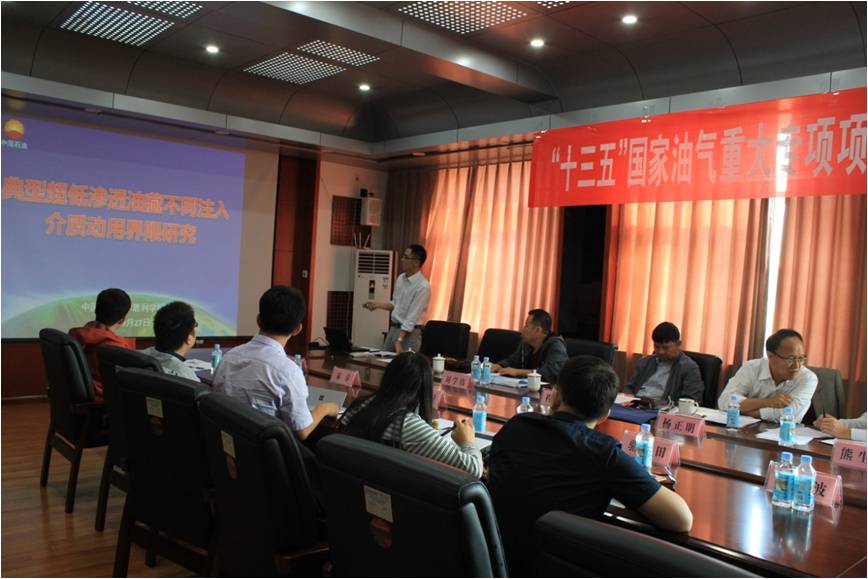 王学武博士代表我校项目团队汇报了子课题《典型超低渗透油藏不同注入介质动用界限研究》主要进展情况,得到了与会专家的肯定。最后,课题长对课题取得的中期进展进行了总结,并对下一步的具体科研工作提出要求。