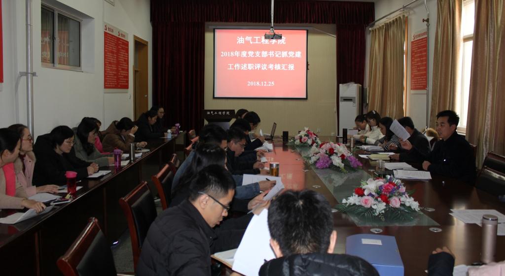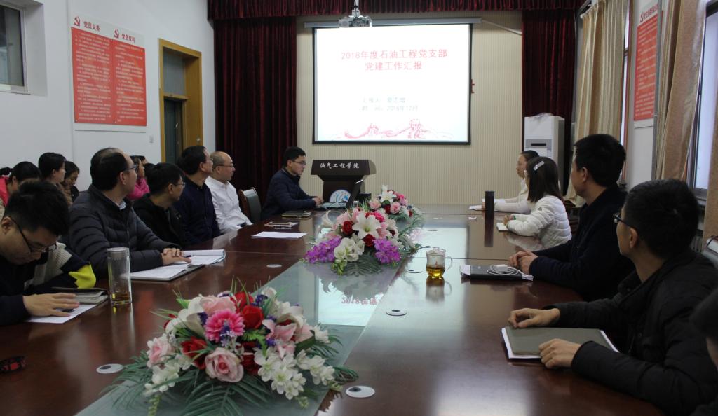 资源科学与工程党支部、储运工程党支部、石油工程党支部分别由党支部书记就履行党建责任、加强党员队伍建设、党支部战斗堡垒作用发挥、党员教育管理等方面实事求是的总结成绩,客观分析存在的突出问题,并提出下一步工作思路和整改措施。