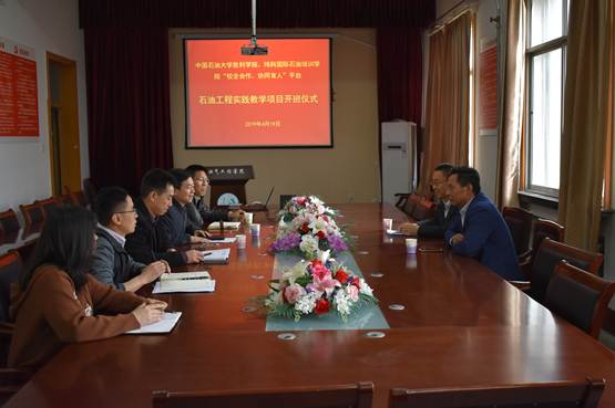 2019年4月19日上午,油气工程学院、纬科国际石油培训学院在4教405教室举行“产学合作、协同育人”平台——石油工程实践教学项目开班仪式。油气工程学院石油工程系主任王学武主持会议,油气工程学院执行院长梁敬升、党总支书记章志军、副院长代晓东、山东科瑞控股集团党委副书记闫石、东营纬科国际石油培训学院副院长郭晓峰、山东科瑞油田服务集团HSE高级经理张善平以及石油工程系部分教师和2017级石油工程技术专业学生参加会议。