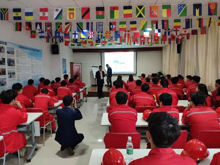 调研期间,刘衍聪到东营纬科国际石油培训学院培训中心看望了我院2017级石油工程技术采油生产实习的学生。刘衍聪勉励同学们要珍惜实习机会,注意实习安全,多动手、勤思考,强化专业技能,同时对实习工作多提意见和建议,不断提高实习效果。