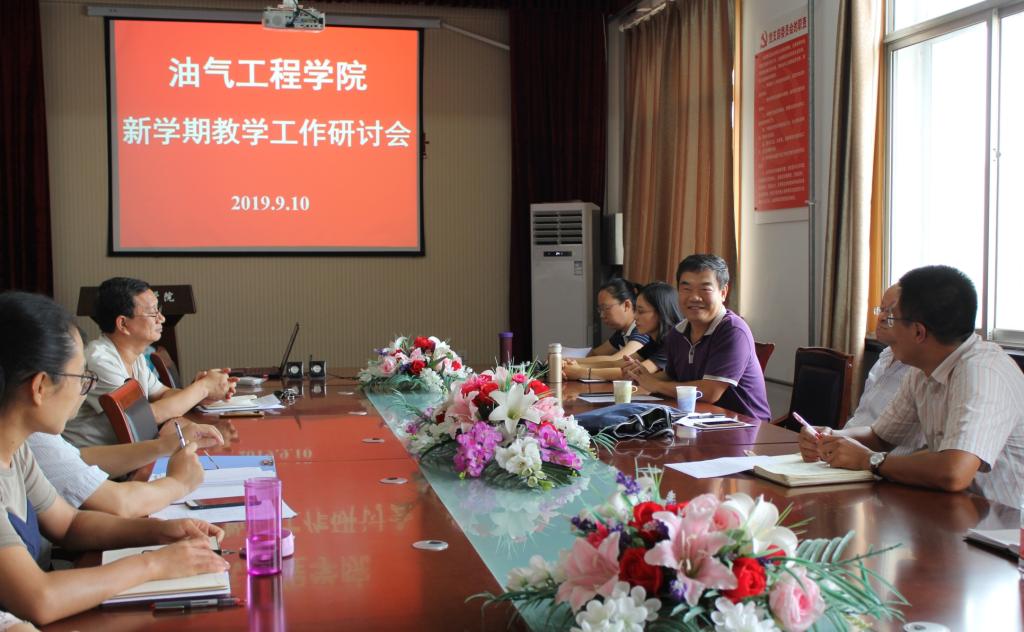 2019年9月10日下午,油气工程学院在西配楼四楼会议室举行了新学期教学科研工作研讨会,对2019学年新学期学院各项工作进行了部署安排,院长金强、特聘教授吴晓东等学院领导及全体教师参加了此次会议。会议由执行院长代晓东主持。