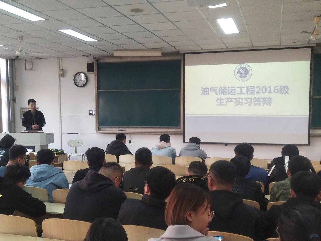 2019年10月29日下午4时,油气储运工程2016级生产实习答辩暨实习总结大会在四教212顺利举行。辛艳萍副院长、高亮副院长、储运系主任刘坤、储运本科生产实习负责老师以及储运系部分老师出席了活动。