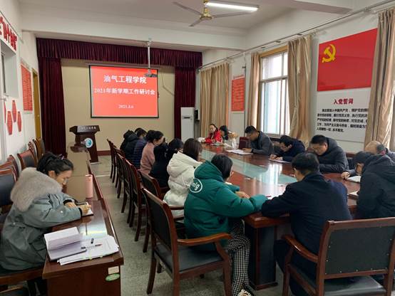 3月6日上午,油气工程学院在4004会议室召开新学期教学工作研讨会,执行院长代晓东主持会议,学院领导、党支部书记、副书记及系室主任、副主任参加会议。