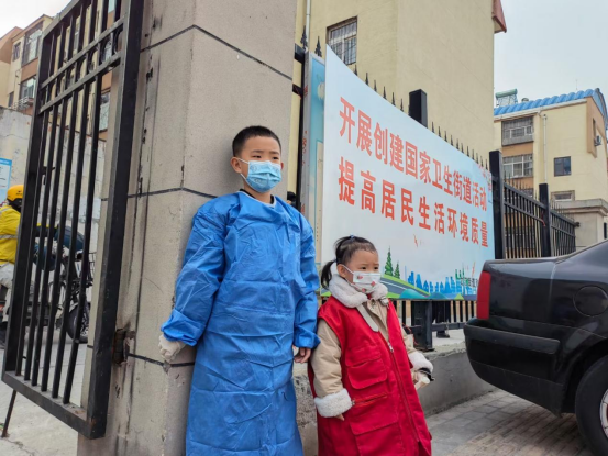“明晚,我将和妈妈还有妹妹一起去小区门口防疫志愿服务啦!”施钦彧在日记中激动地写道。虽然已经入春,料峭的晚风还是将温度带到了10℃以下。吃过晚饭,施钦彧就拉着3岁的妹妹施馥妤穿上了冬装的羽绒服,催促着妈妈赶紧下楼。因为,这个年纪的小男孩已经非常的要强,他不想错过他们的值班时间。小区来往的居民,便看到了这样的画面——一家三口整整齐齐穿着防护服、戴着口罩,耐心地提醒着进出的人们戴好口罩。爱美的妹妹非要把大人的志愿者马甲穿在身上,跟她一般高的马甲显得她更加娇小了。而小伙子则是一丝不苟笔直地站着,颇有点小战士的样子。但两个孩子心里都牢牢记着妈妈的话,力所能及做志愿服务,帮助别人快乐自己。