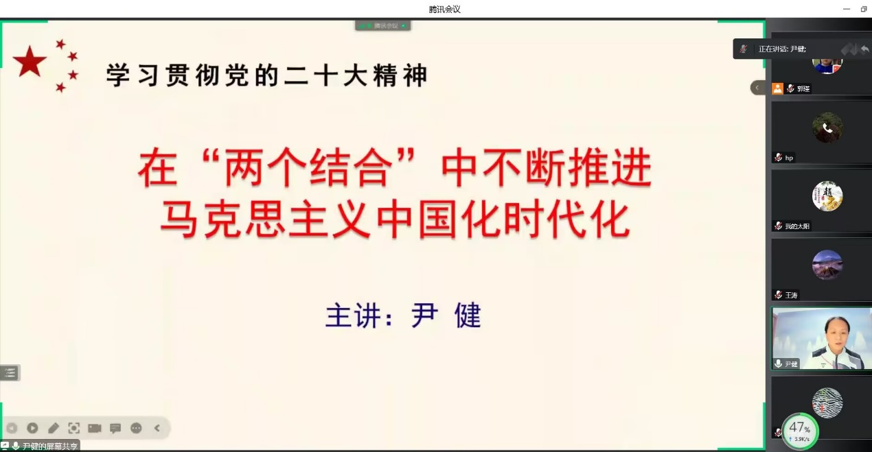 12月7日下午,学校党的二十大精神宣讲团成员尹健走进石油工程学院,以《在“两个结合”中不断推进马克思主义中国化时代化》为主题作线上报告,为石油工程学院全体教师宣讲党的二十大精神。