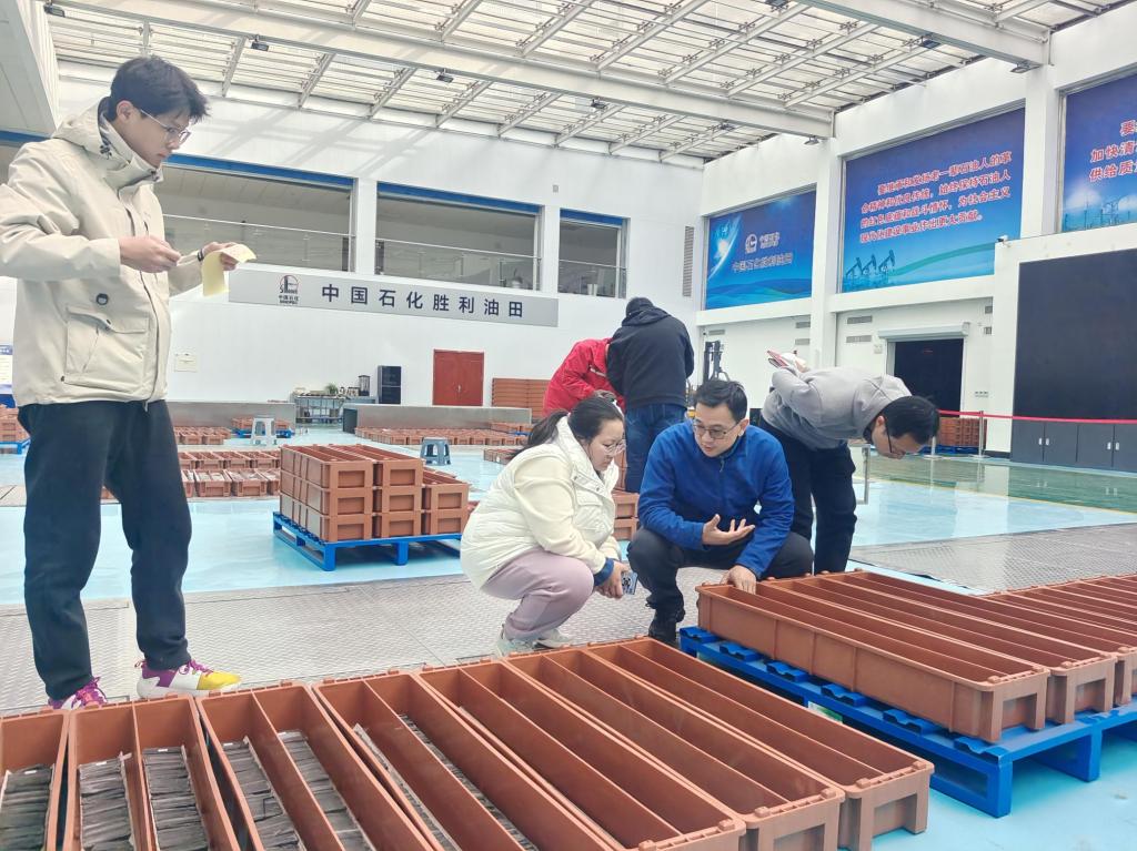 3月15日上午,石油工程学院王蛟教授、陈杰高工来到胜利油田岩心库,汇同勘探开发研究院西部柴达木盆地探区相关科研人员,开展了新钻井岩心观察与分析工作。