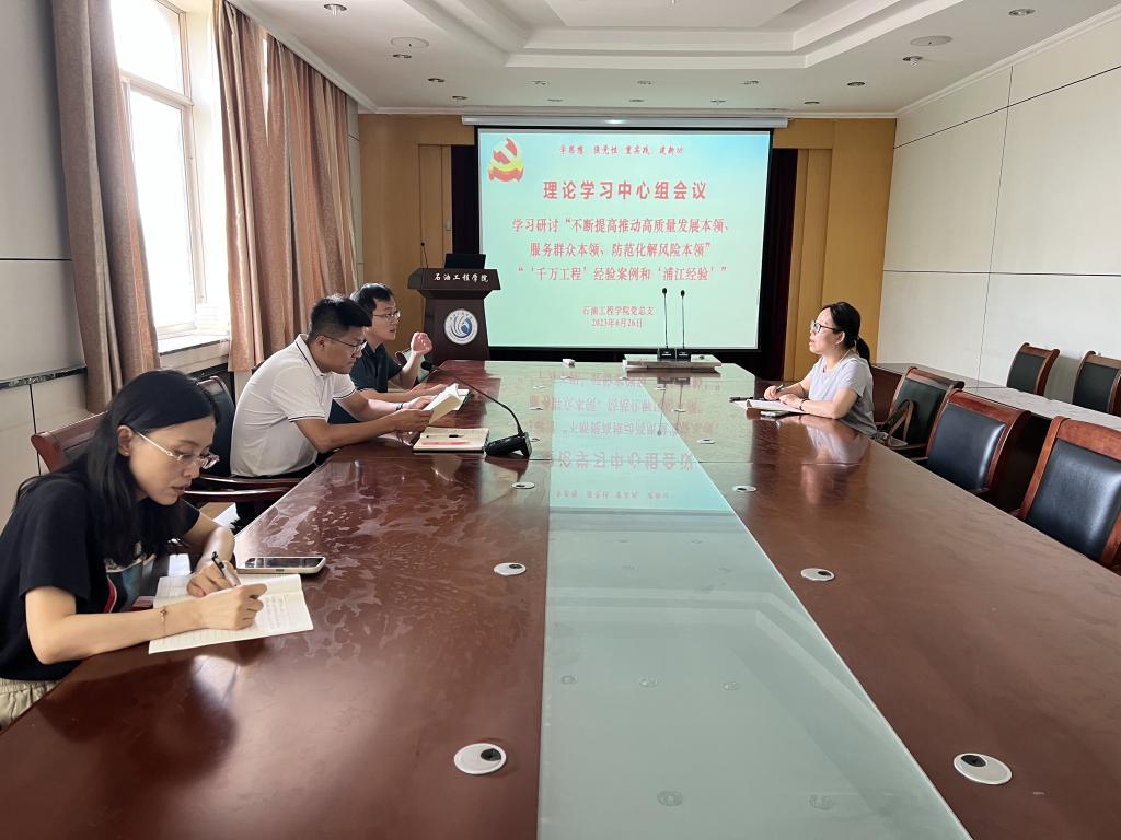 6月26日,石油工程学院理论学习中心组进行集体学习和交流研讨,专题学习研讨“‘千万工程’经验案例和‘浦江经验’”;“不断提高推动高质量发展本领、服务群众本领、防范化解风险本领”。党总支副书记李聪聪领学,党总支书记代晓东、副院长辛艳萍、高亮参加学习,并结合工作实际作交流发言。