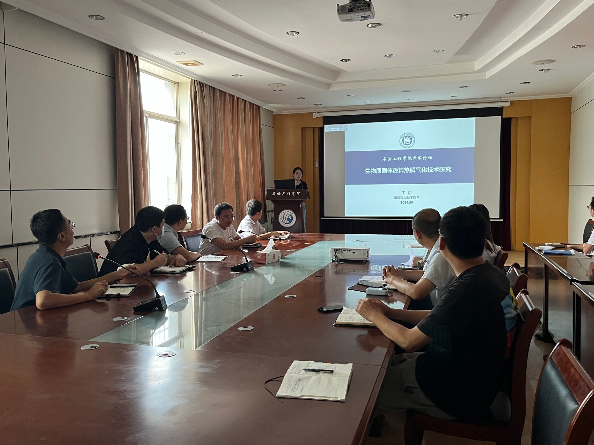 学术报告环节,王圣柱教授首先发表了题为“准噶尔盆地石炭系沟一弧一盆环境烃源岩发育规律及潜力评价”的报告,余威博士和王甜博士分别就“鄂尔多斯盆地长7段泥页岩沉积动力学机制研究”和“生物质固体燃料热解气化技术研究”进行了精彩的学术分享。